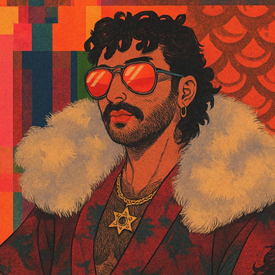 Drenched in velvet, fur, and fabulous, this portrait radiates queer royalty—part Studio 54, part space-age prince. A digital shrine to confident masculinity with a glitter-soaked wink.